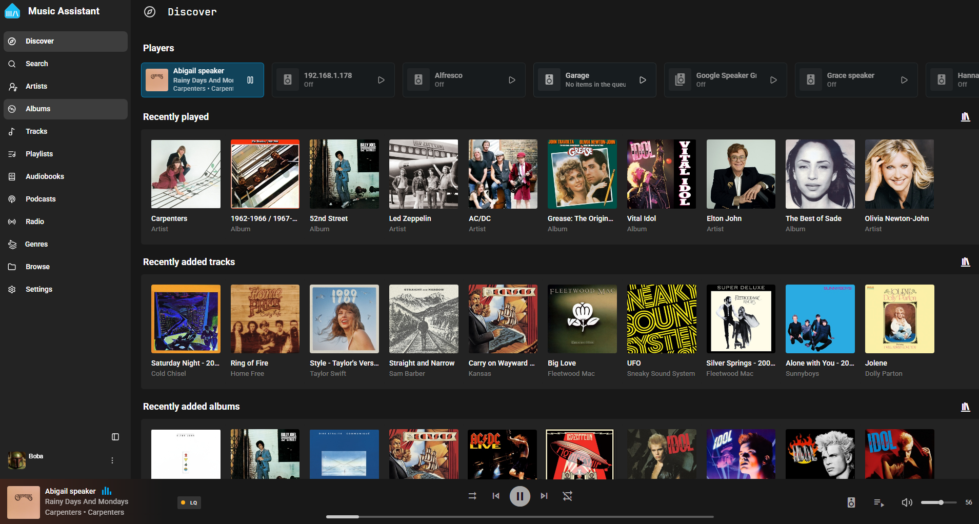 Section titled “Music Assistant Server”The Music Assistant server is a free, opensource Media library manager that connects to your streaming services and a wide range of connected speakers. The server is the beating heart, the core of Music Assistant and it keeps track of your music sources. It must run on an always-on device like a Raspberry Pi, a NAS or an Intel NUC or alike. The server can access multiple music sources and stream to multiple player types.